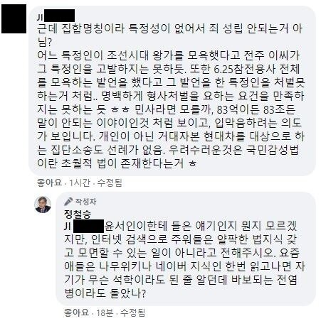 형사로는 당연 못이길거고 민사는 된다 안된다 이야긴 있는데, 민사에서 저게 가능하다고 보는 변호사들 주장으로는 독립운동가는 보훈처에 등록이 된 사람이라 특정성이 성립된다고 볼 수 있다는데 근거를 두긴함. 근데 저렇게 와장창 돈뜯을 순 없고 소액과 소수만 가능할거라고 보는건 마찬가지더라.