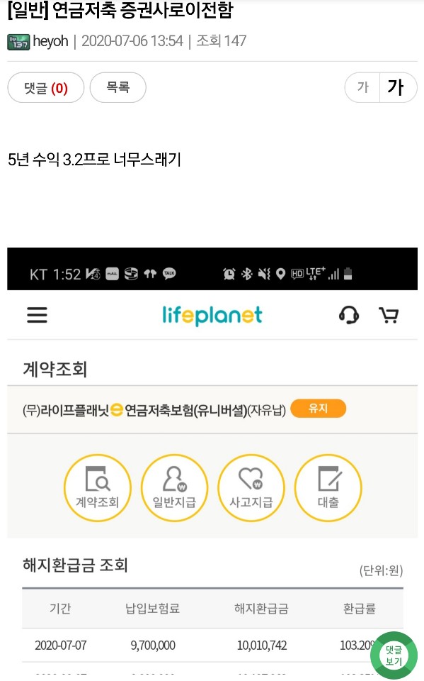 교보생명 연금저축 4년투자 수익률 3.2프로