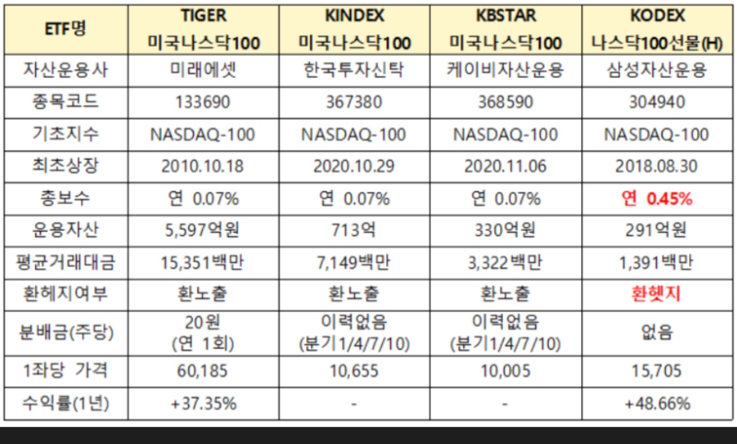 나스닥100 etf상품 5개월투자 수익률 15.4프로