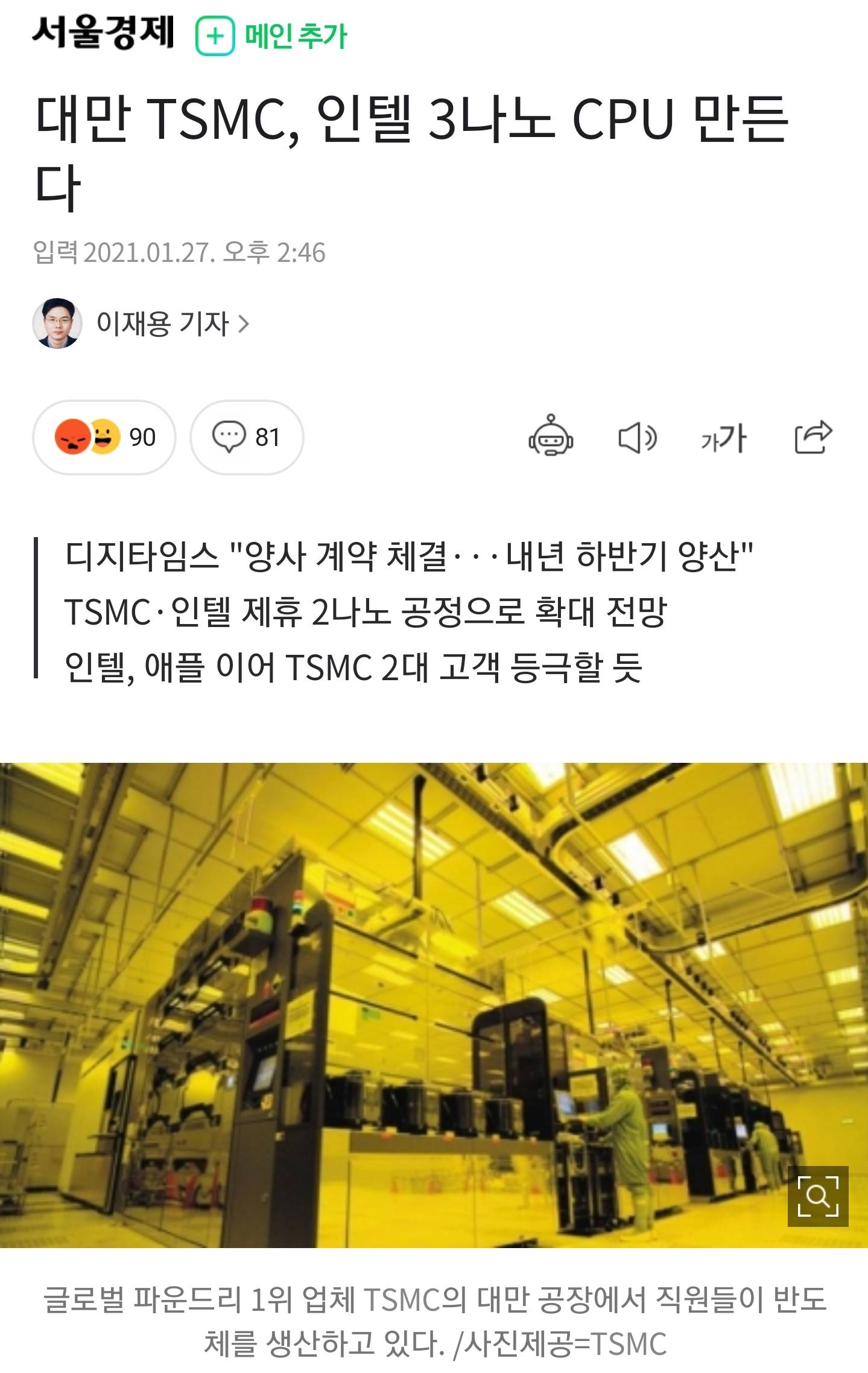 디지타임즈 대만언론이고 tsmc 빨아주는 언론임. 컴터사이트에서는 디지타임즈꺼 믿거래하고 안퍼옴.