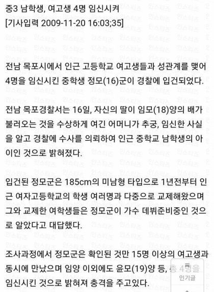 애들끼리 떡쳐서 애 생긴게 왜 입건이 될 일이여? 이해가 안되네