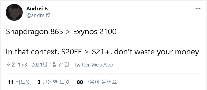 cpu 를 제외하더라도 많은 면에서 s20 이 좋아서 중고 사려고 보는데 가격 안떨어진다