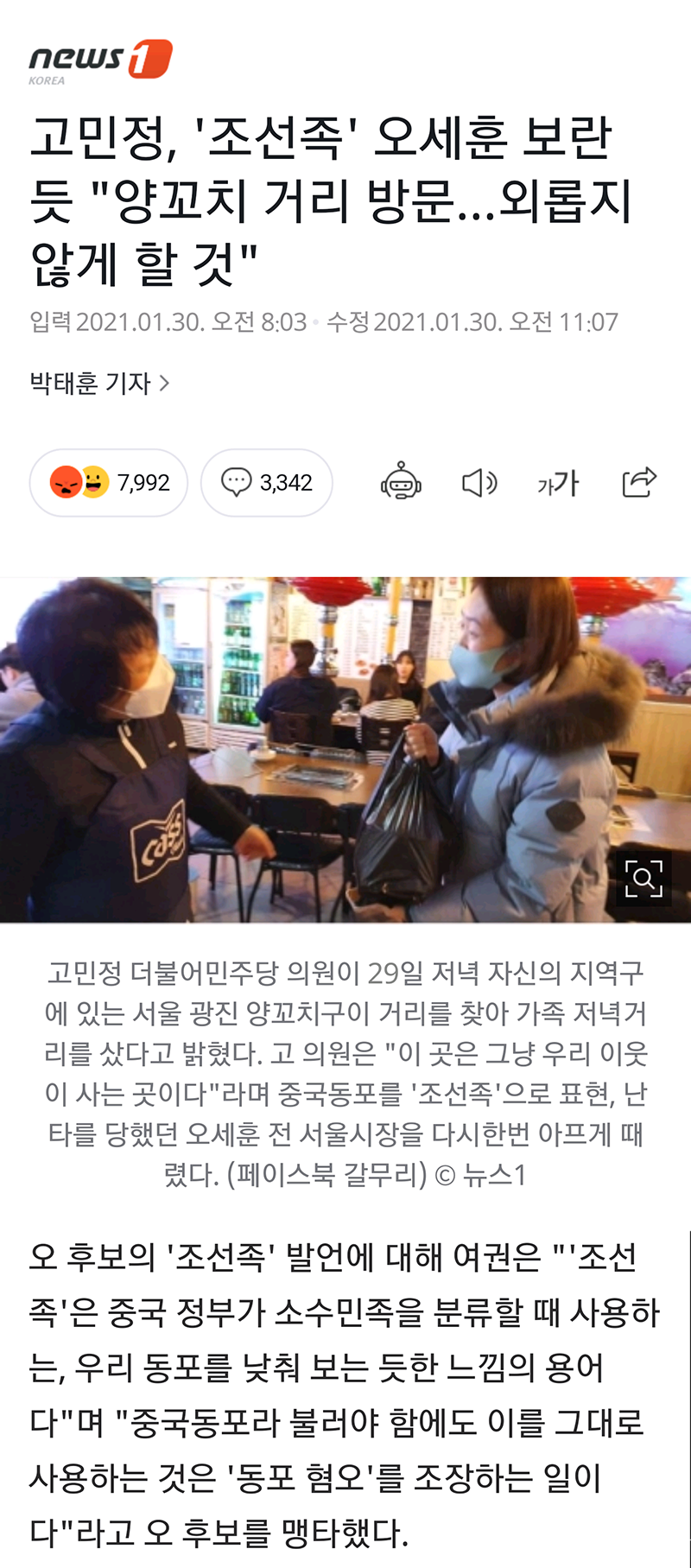 사실 저기서 오세후니가 좆까 조선족이 짱개지 왜 우리 동포냐 시전했으면 여론이 오세후니쪽으로 흘러 갔을텐데..