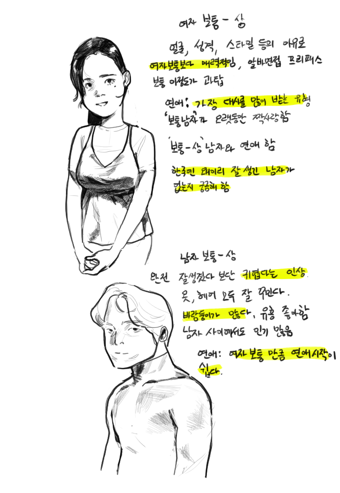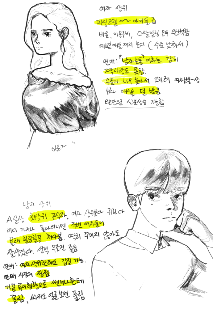 존잘남>>>존잘녀>>여상>남상>여보>>남보>못녀>>못남>존못남>>>존못녀