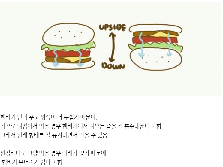 어차피 햄버거에서 즙나올거라고 해봐야 소스인데 그게 뒤집는다고 해결될거같진 않은