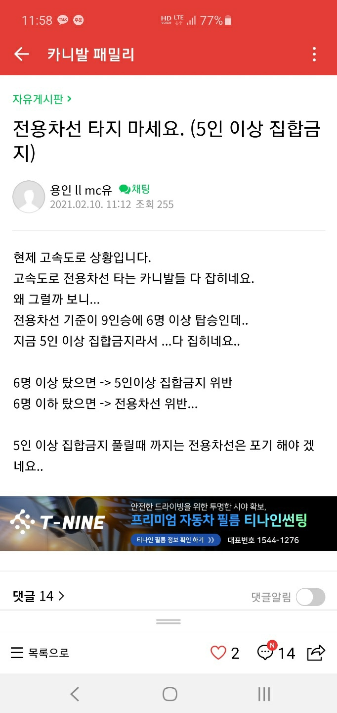 6인이하면 전용차선 위반이고 6인 이상이면 5인이상 집금지 위반이니 어떻게든 걸릴수밖에 없는 시나리오네.