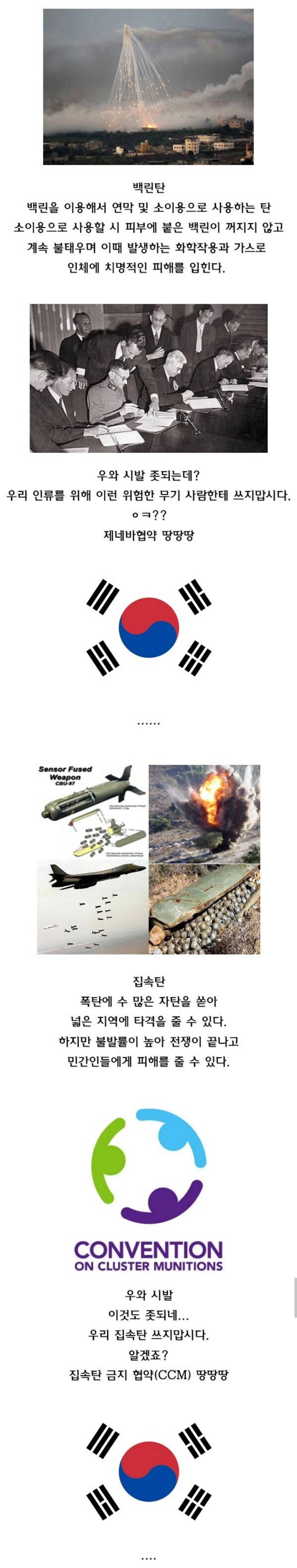 백린탄 쓰지말자그랬지 없다고는 안했다 전쟁터지면 백퍼씀 창고에 겁나 쌓여있다 ㅋㅋㅋㅋ