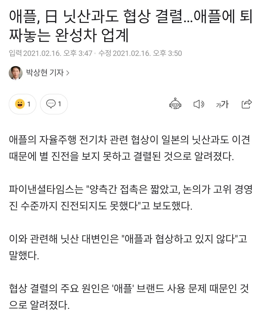 그런데 애플이 단지 차량에다 iOS 자동차 모드 탑재해놓고 그걸로 애플카라고 선전하며