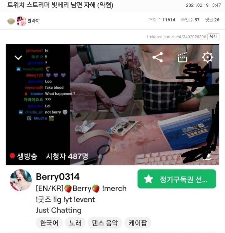 트위치로 넘어왔을때 남편이랑 알콩달콩하길래 부럽네~했는데 이건뭥뮝