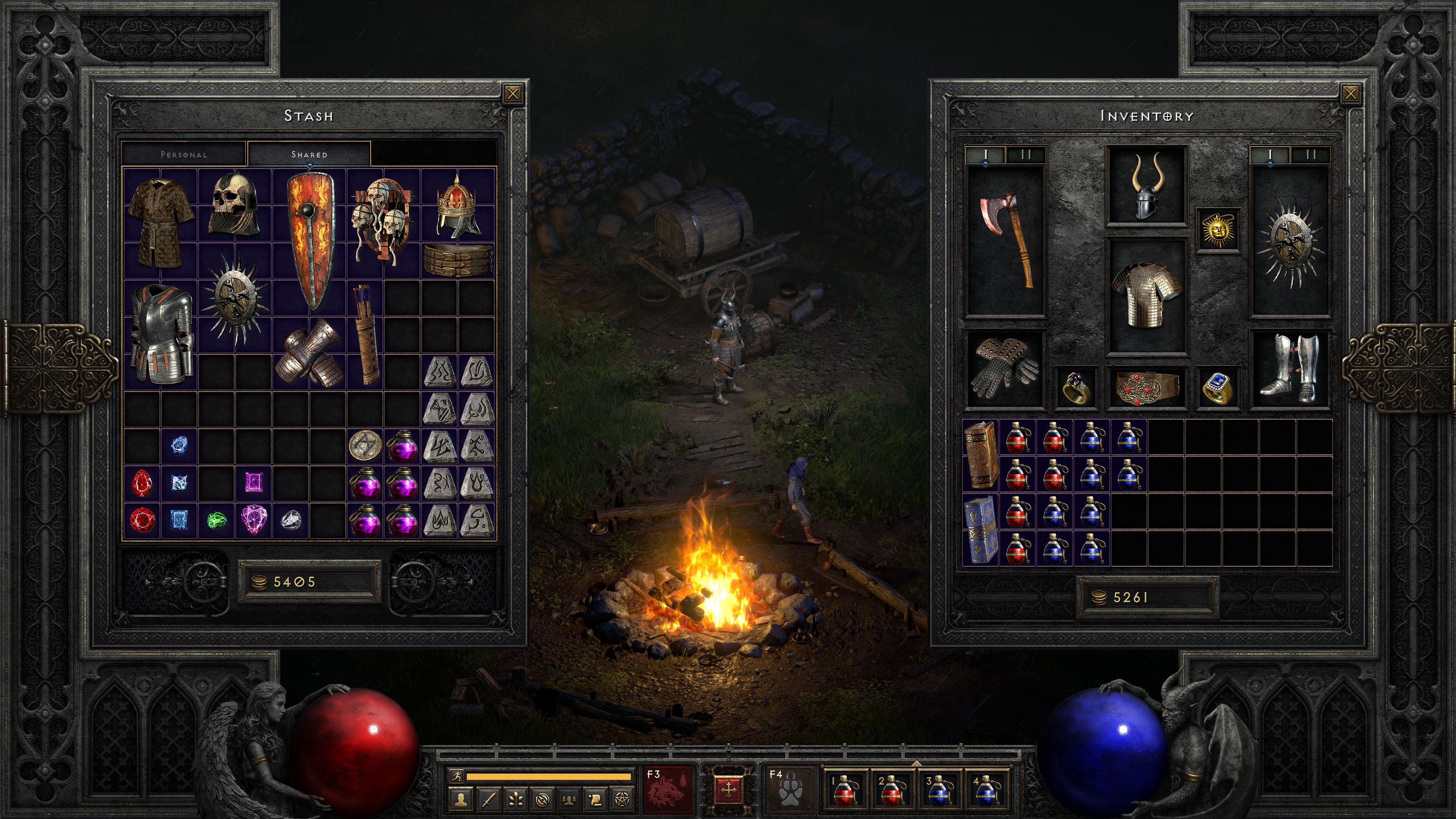 개인 보관함이 48칸에서 100칸으로 늘어났습니다. 한 Battle.net 계정에 속한 모든 캐릭터가 공유 보관함 탭을 사용할 수 있습니다. 영웅간에 손쉽게 장비를 교환할 수 있게 되어, 더 이상 불편한 과정이 필요하지 않게 되었습니다.