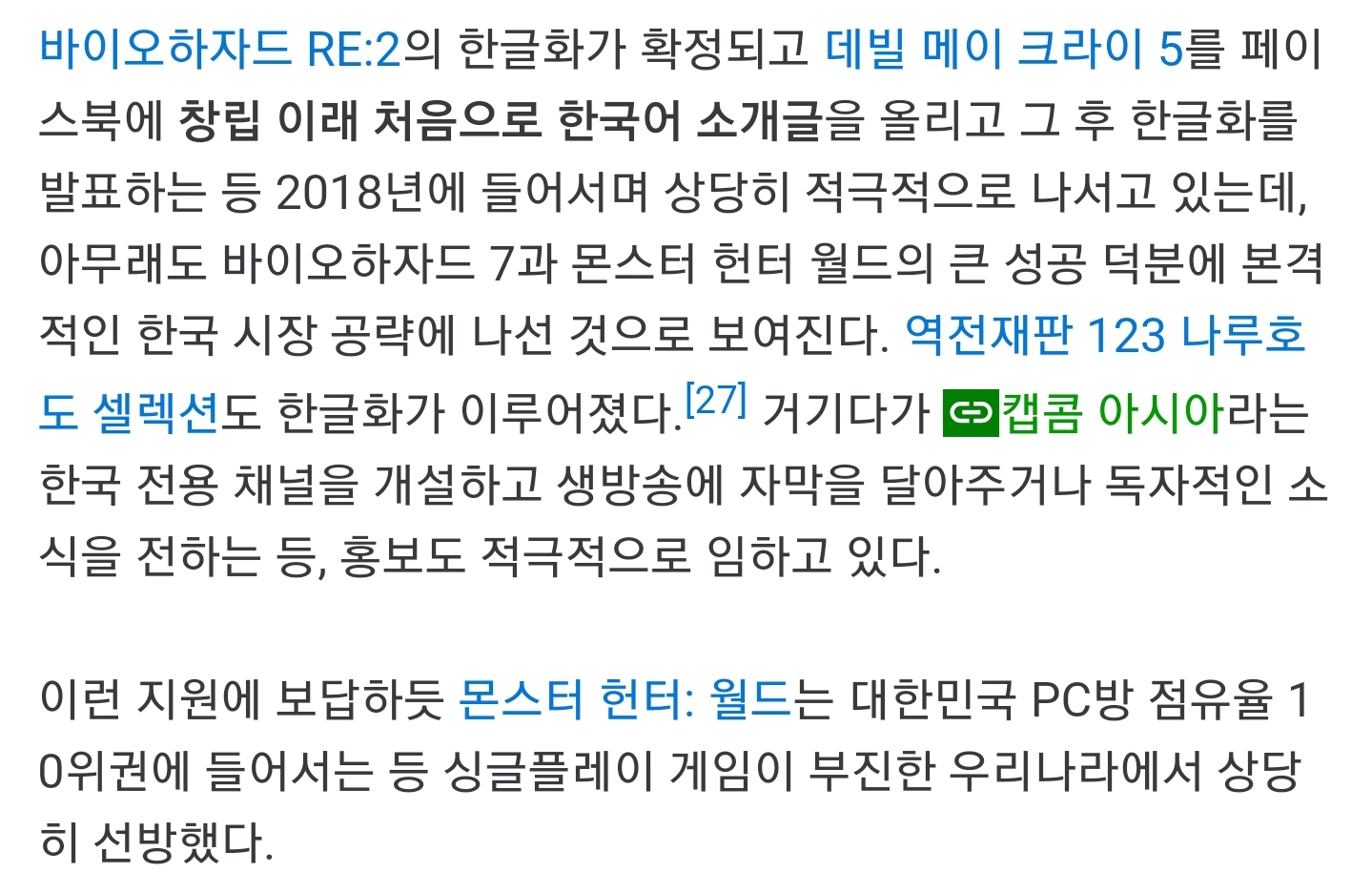 잘 분석하긴 했지만 한국시장이 이리 분석하고 대응할 가치가 있나? 어차피 폰가챠겜에 돈쓰느라 캡콤겜따윈 살 돈 없는데