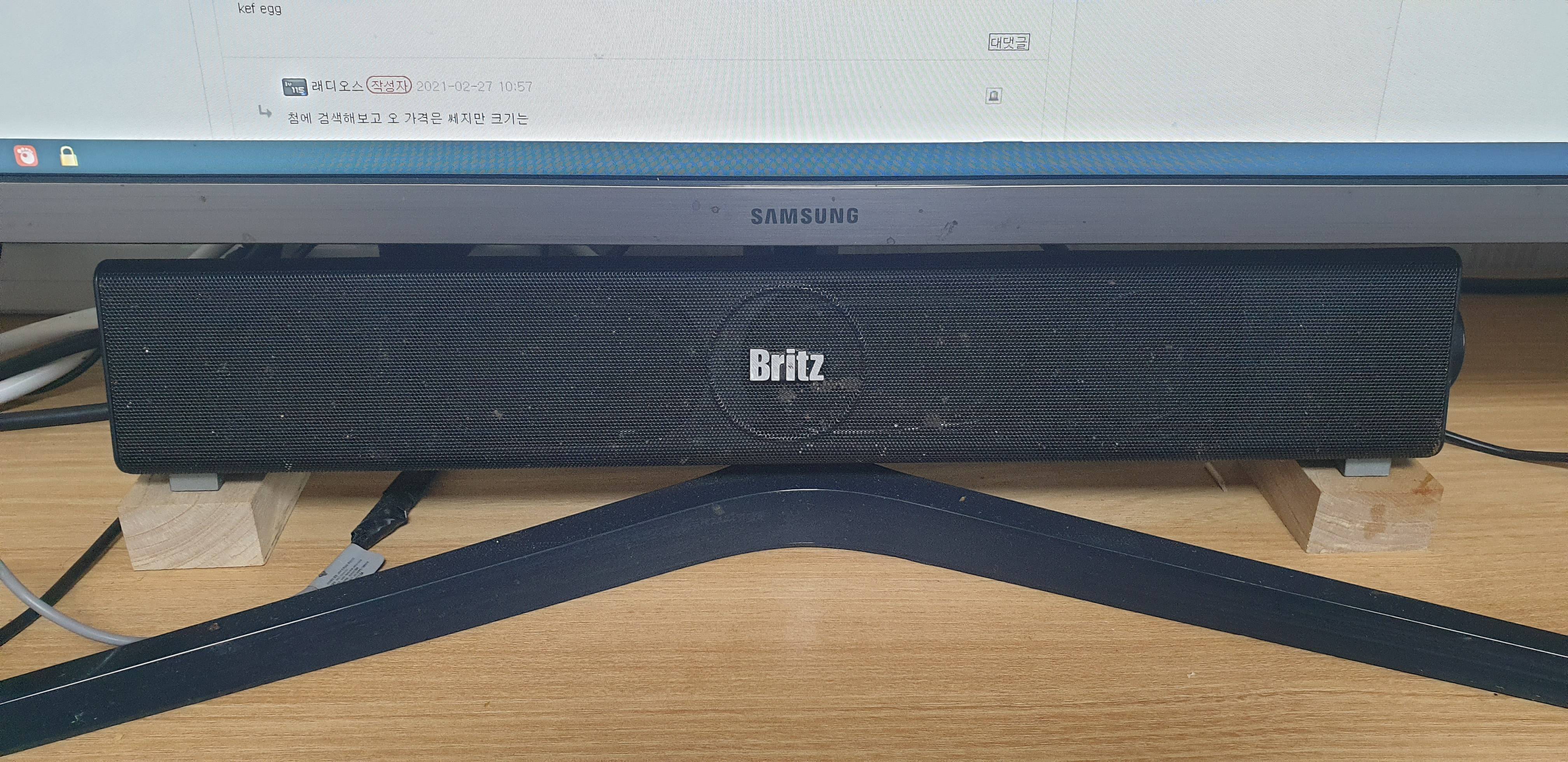 그러면 모니터 밑에다 둬야하는데, 그래서 스피커 높이가 13cm로 제한됨