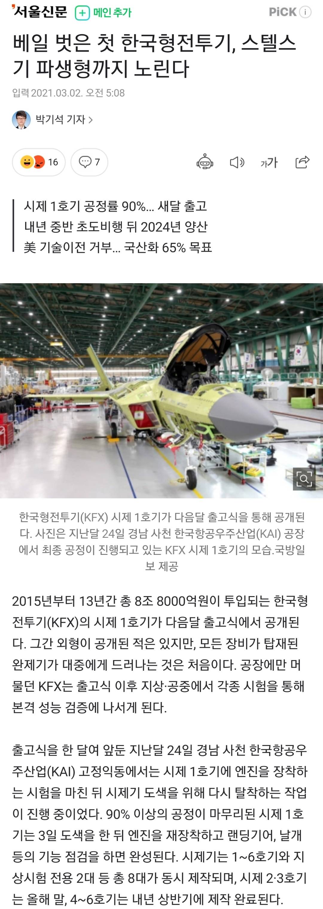 f16 대체라니.. 나름 가슴이 웅장해진다