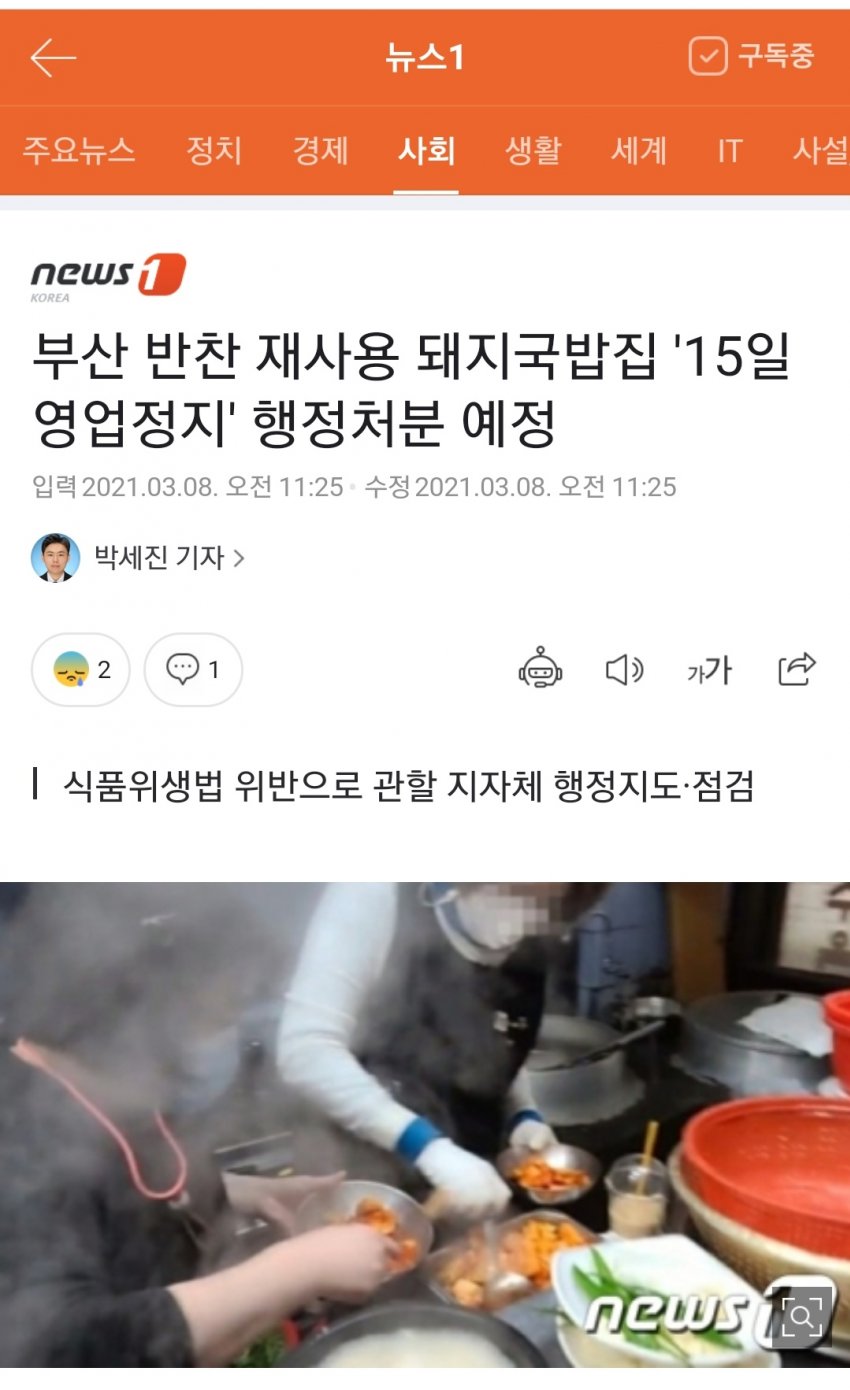 방송하다가 깍뚜기 잔반 재사용 장면이 방송으로 나가서 논란