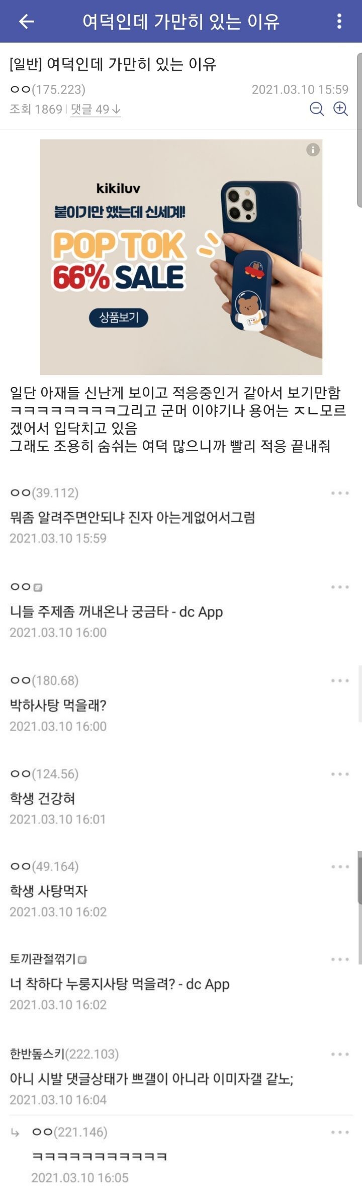아닌데 여덕에서지랄하는거내가봤는데 잠깐만 찾아몸