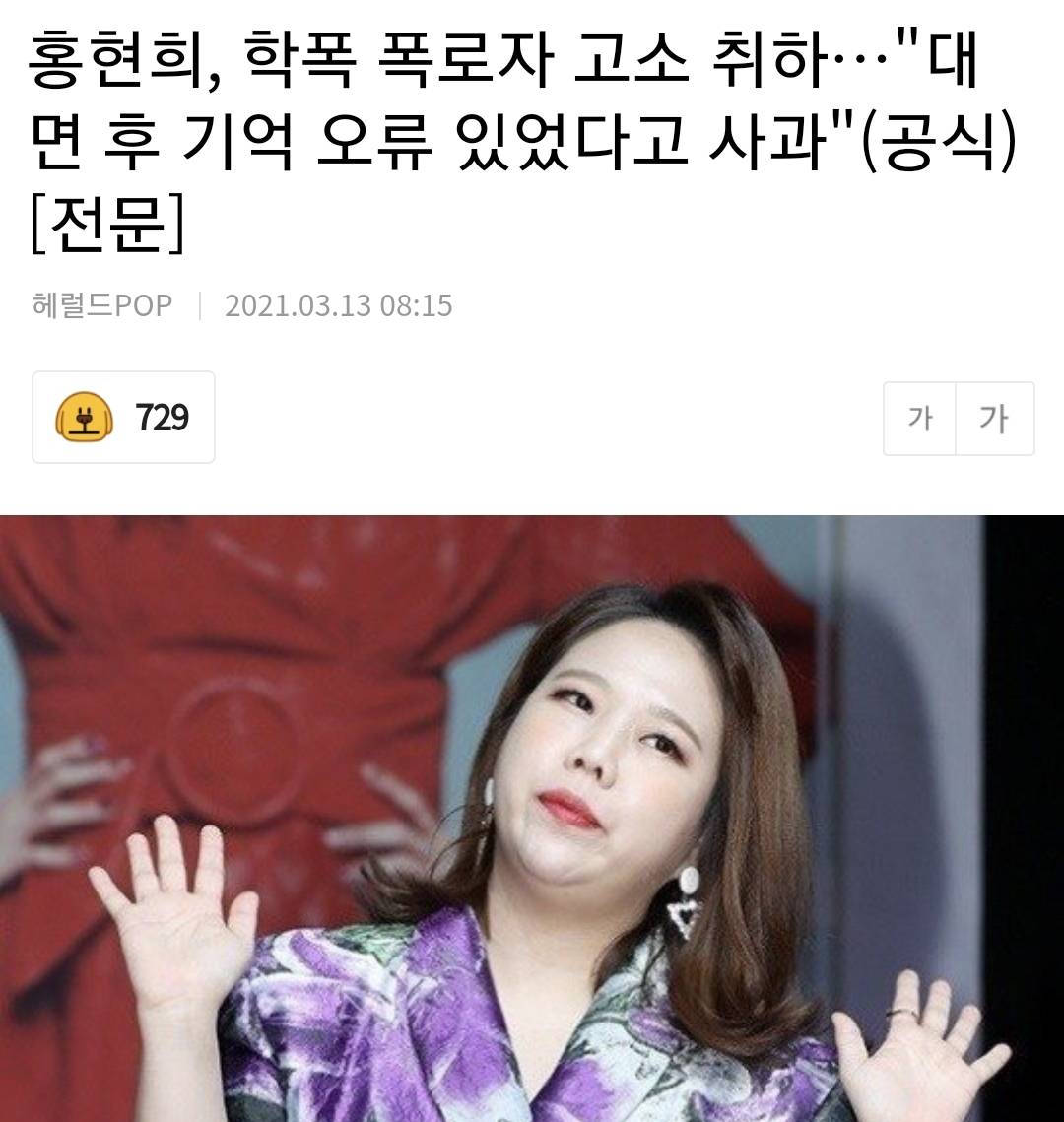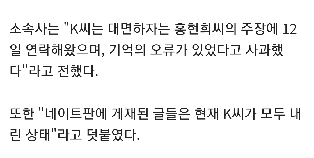 제목 인용구에 주어가 없다보니 홍현이가 기억오류 있었다고 사과한건가 했네. 취하까지 했다하니....