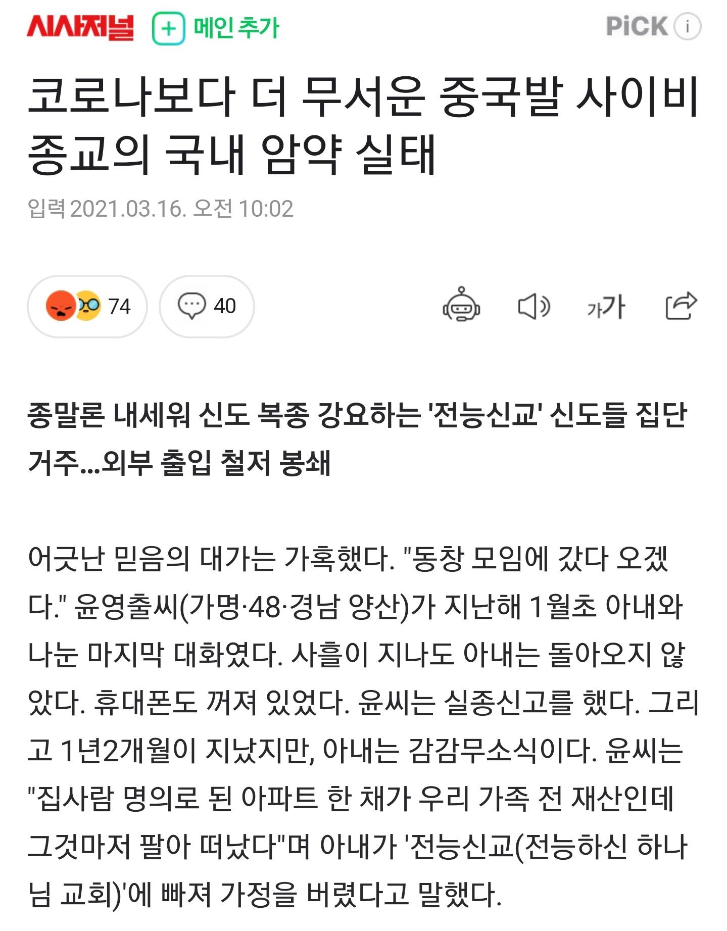 신천지보다 더 지랄맞다고 함