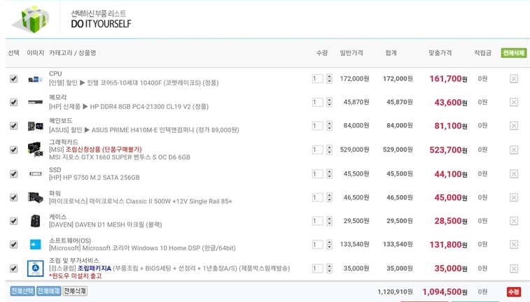 10400이 가성비라인이던가? 글카빼면 50이면 맞추긴하네