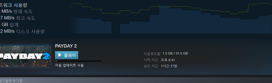 이번에 인터넷 바꾸고 이런 다운 처음이라 빠른건지 느린건지 모르겠다.