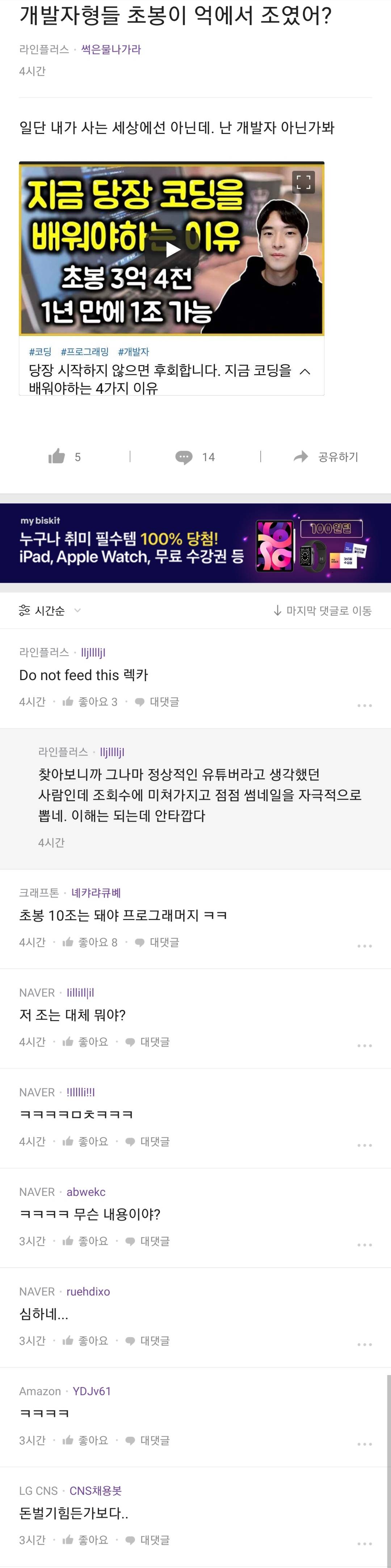 1년만에 1조씩 버는 분들이니 치킨 좀 사주세요