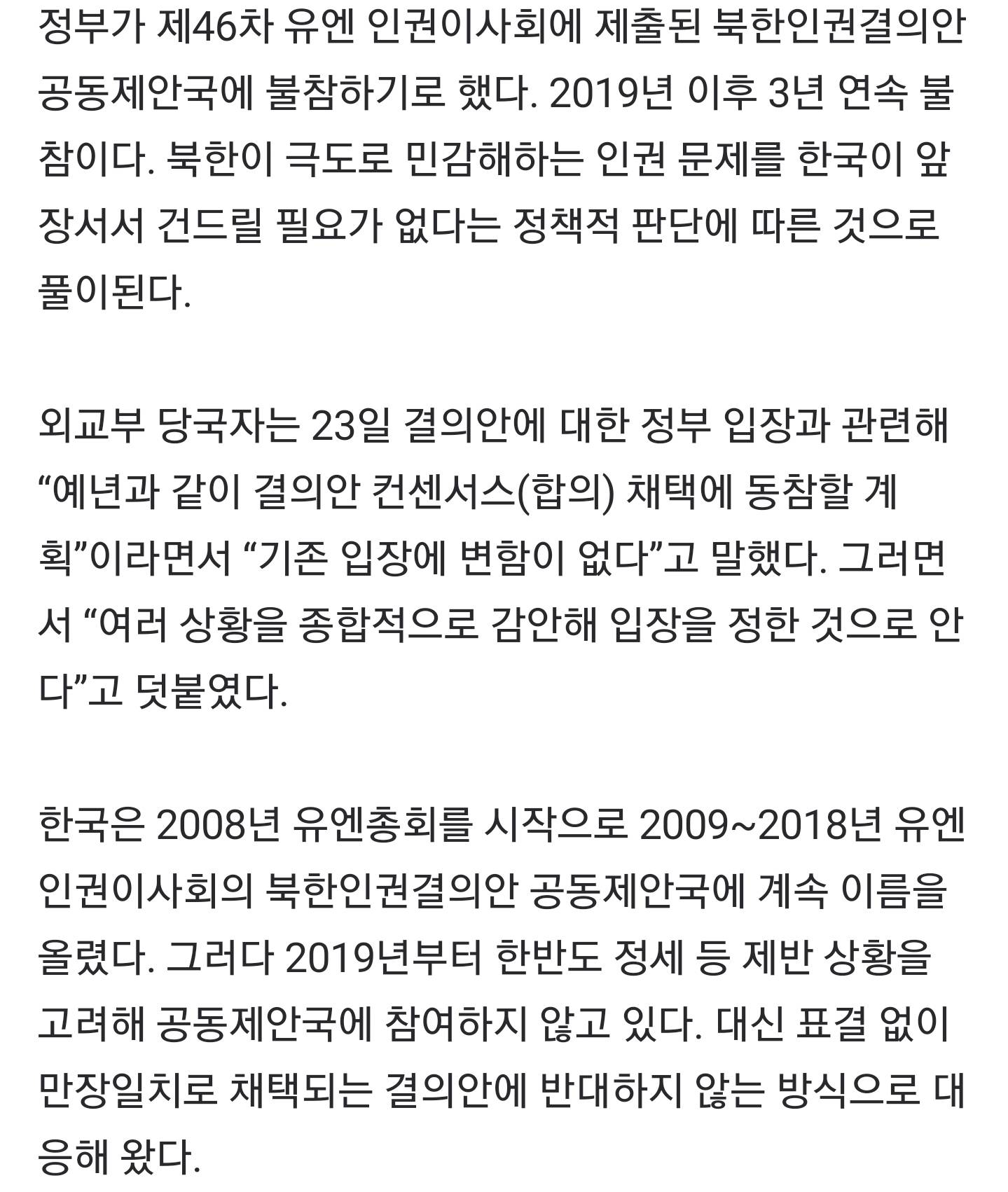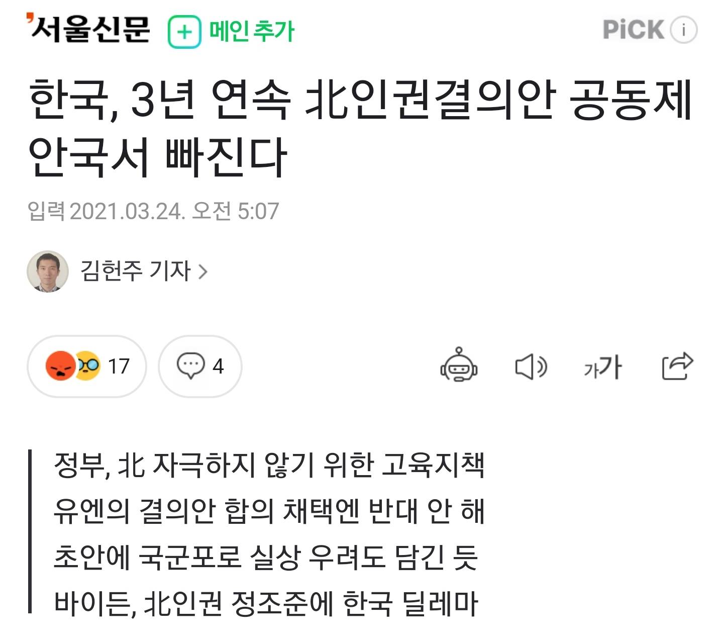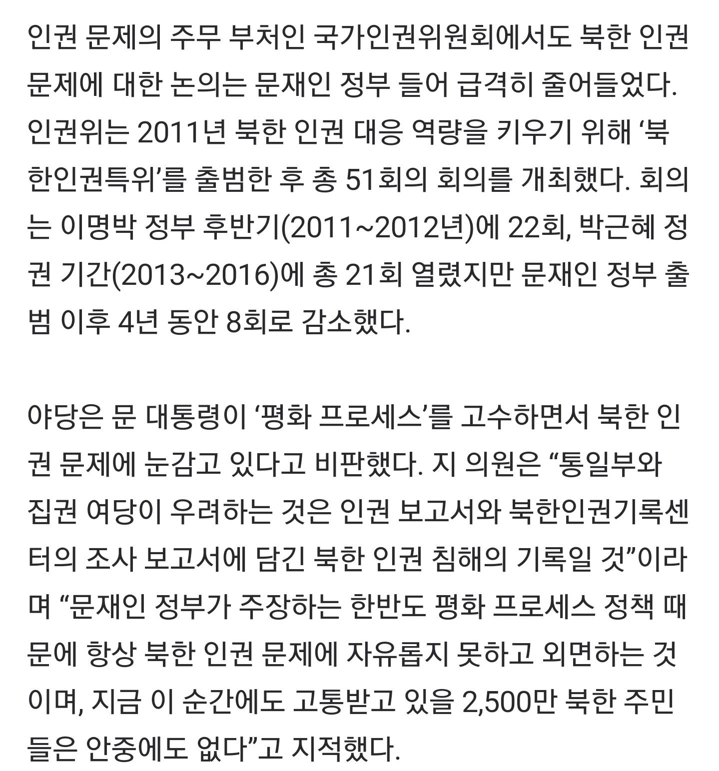 순시리 정부가 북한 인권에 더 신경썼는걸?