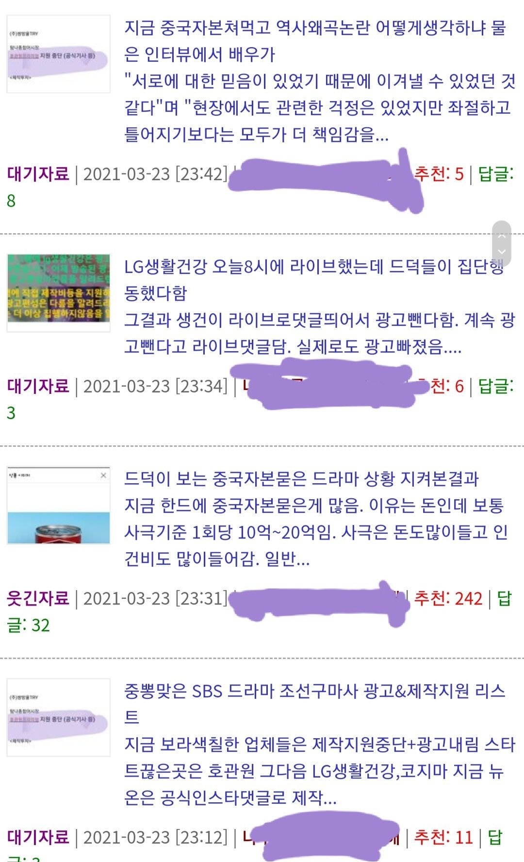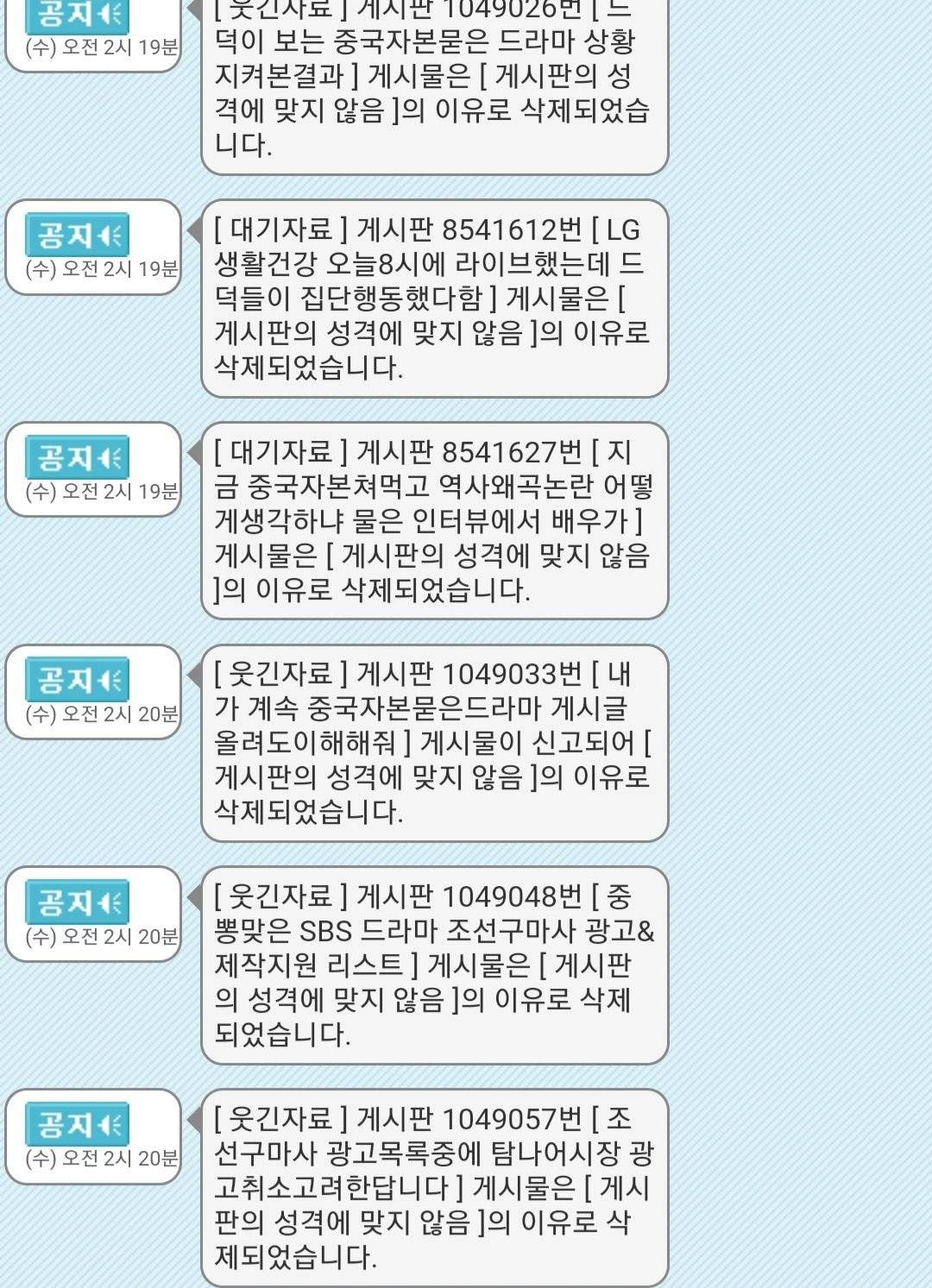 웃대는 짱개구마사 관련 글 지우고 난리남