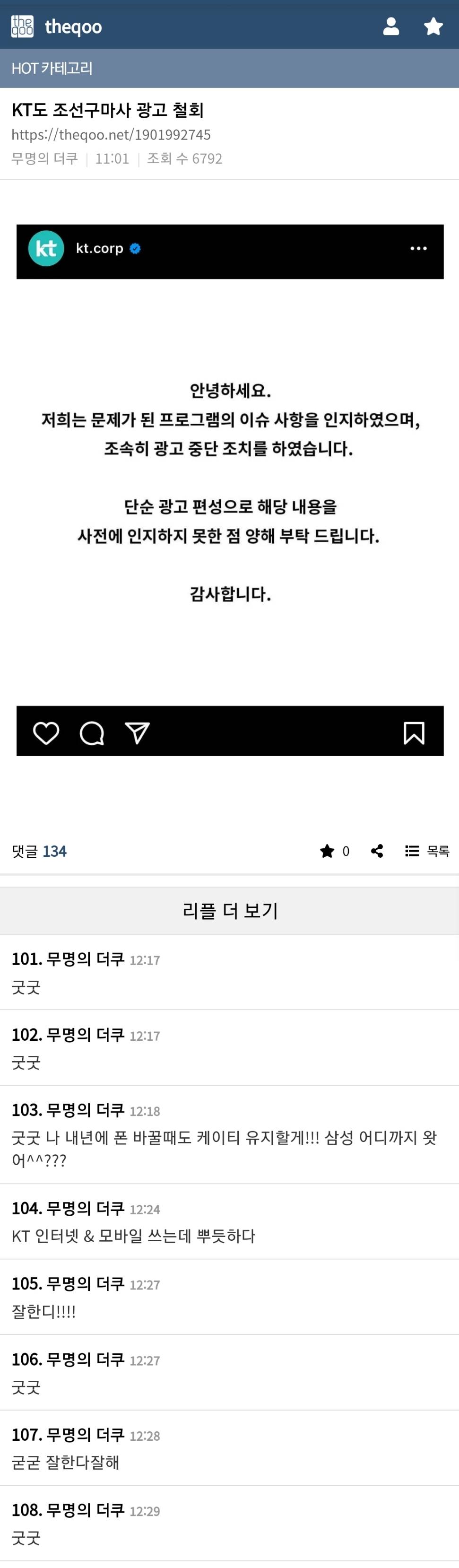 당사 제품 광고는 이후 회차부터 전면 중지할 계획입니다.
