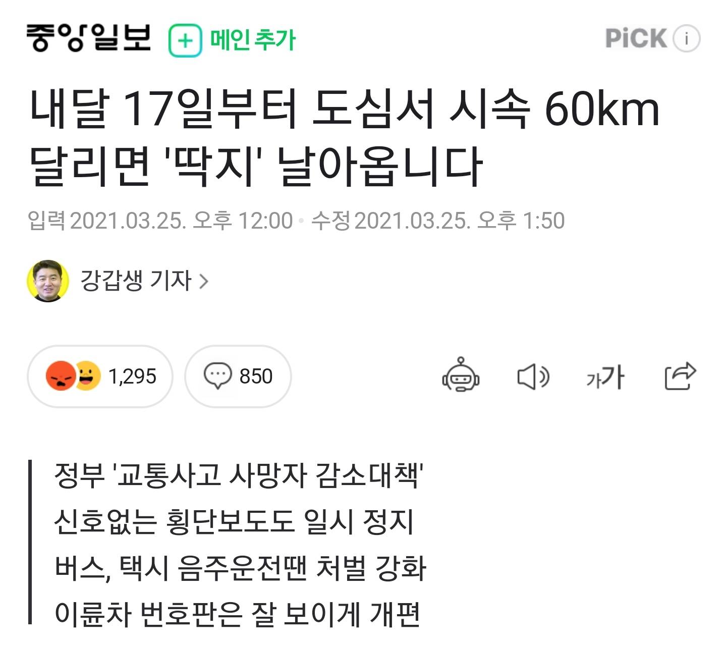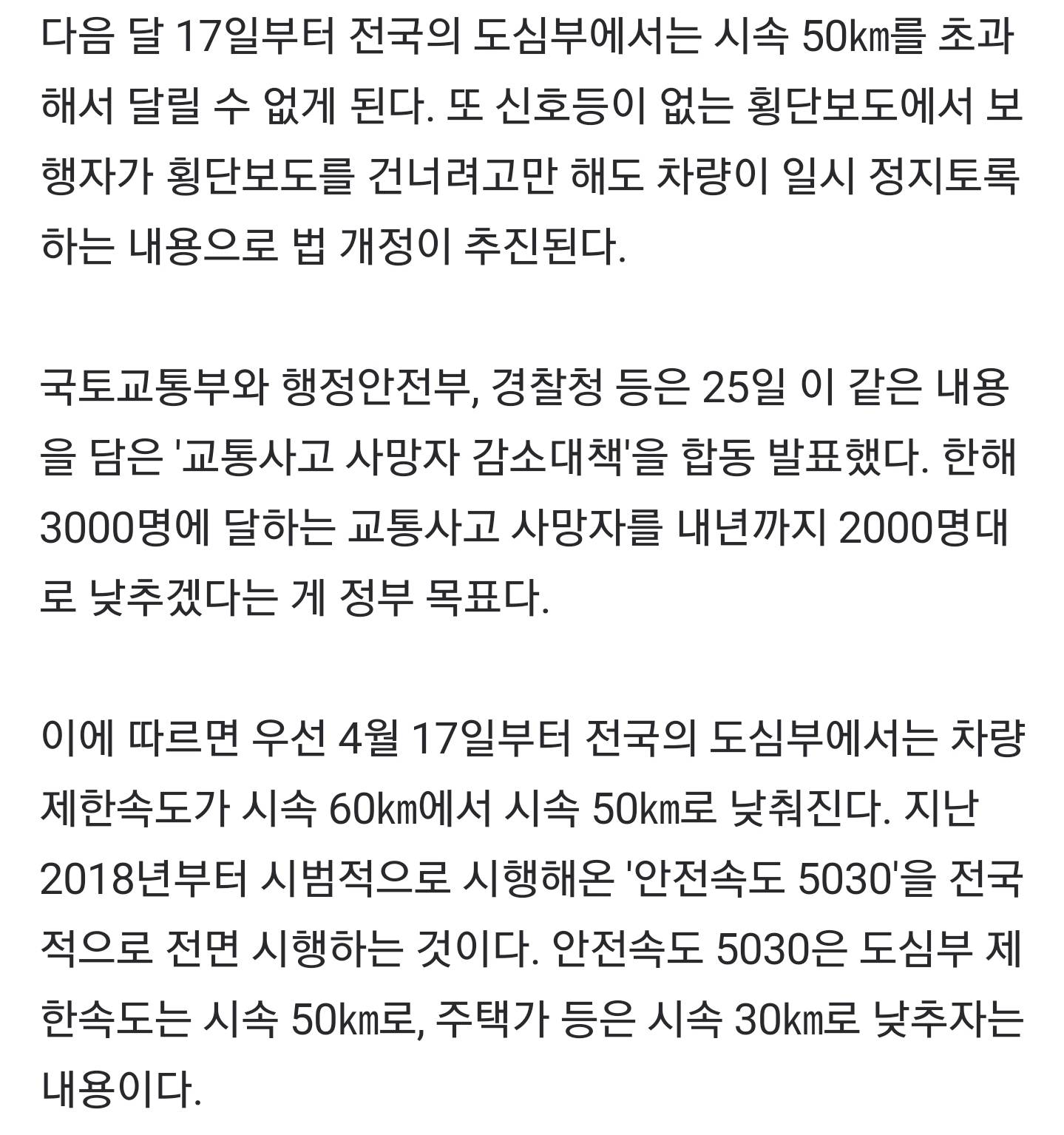 사실 주택가(골목)은 30이면 적당함. 근데 큰길(2차선) 작은길(4차선) 개 ㅈ 무시하고 50으로만 가라니 그건 좀 ㅅㅂ 아니지 내 생각엔 80정도면 적당할듯 대신 일부 구간 50키로 빡시게 단속하고