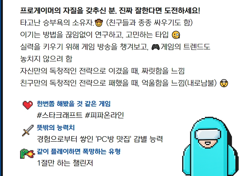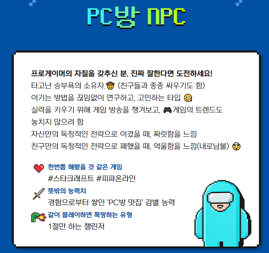 친구없어서 집에서만 겜하는 핵아싸 너드들을 위한 질문이 하나도 없네 첨부터 끝까지 피시방얘기밖에없음