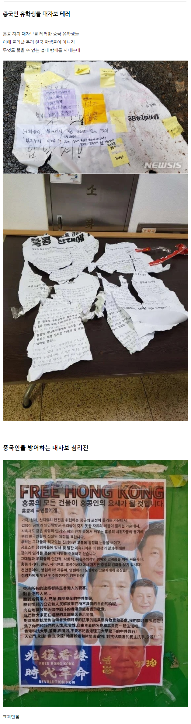 작년에 학교 안나오고 인강 한창 들을틈에 중국애들 대자보 구석에 잘 붙이더라