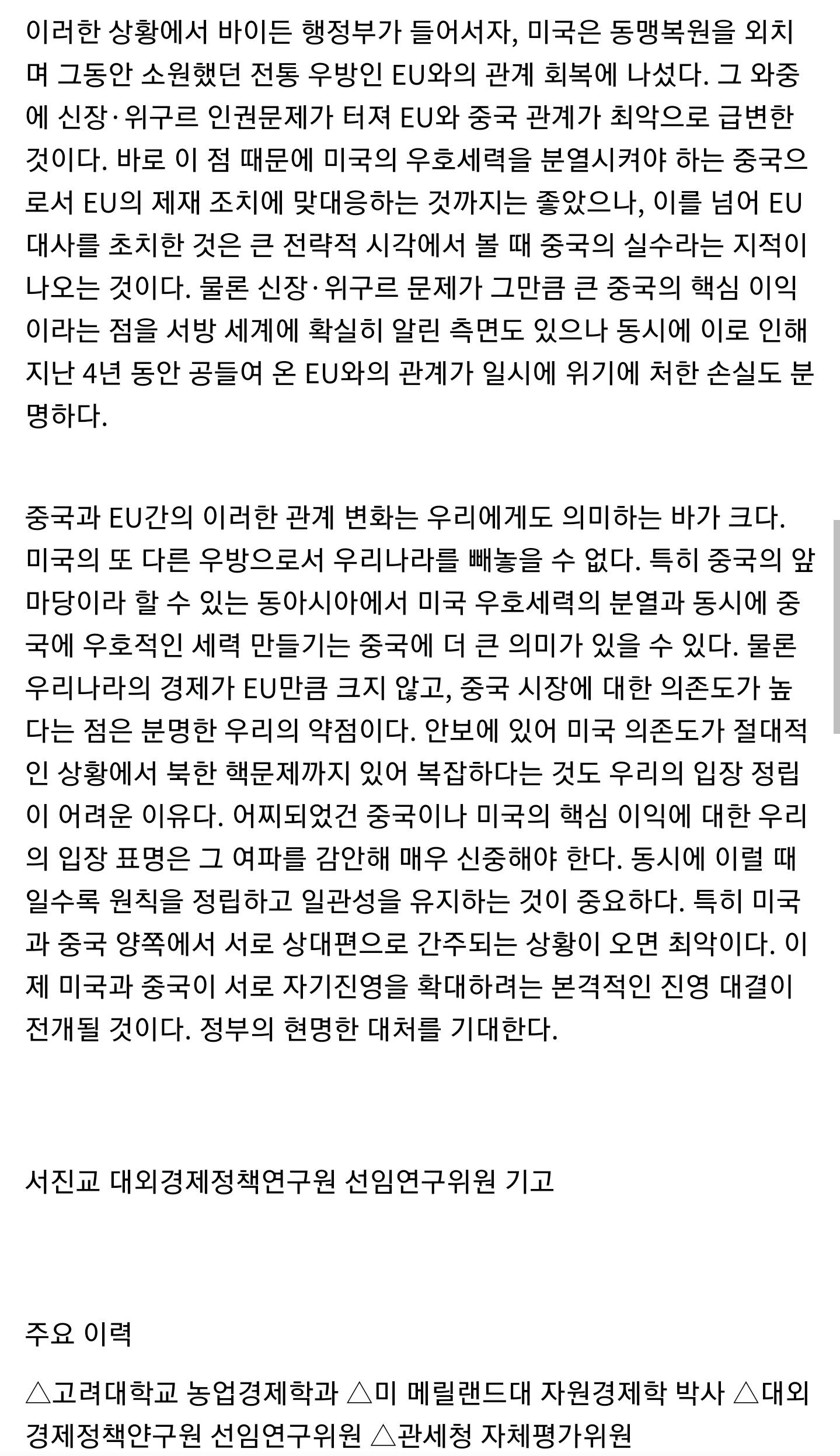 이거 진짜 요즘 좆되는 일임 이미 미국은 우리나라를 우방에서 배제중임 주한민군 주둔비용 올려달라곤 안하겠지만 바이든도 주한미군 감축할거임. 믿을 수 있는 우방이 아니거든. 중국이 너무너무너무너무 원하는 일이지 내가 여기서 직접적으로 말은 못하겠지만 우리는 이미 바이든정부가 제안한 여러 협력사항(나쁘게 말하면 우리편에 붙어라 라는 제안)을 중국눈치본다고 거절했고 국제정세에서 굉장히 불리하게 돌아가는 즁임
