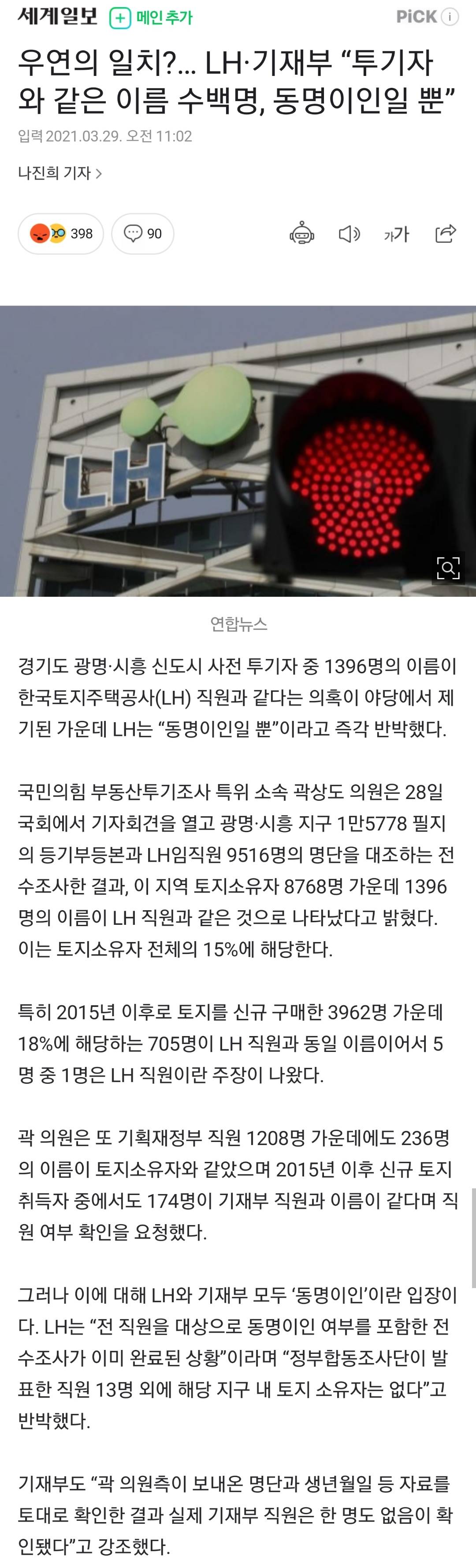 토지를 신규구매한 3962명 밖에 안 되는 무작위 표본 중에서 LH 직원 약 9400명 중 705명이랑 동명이인일 확률을 구하시오.