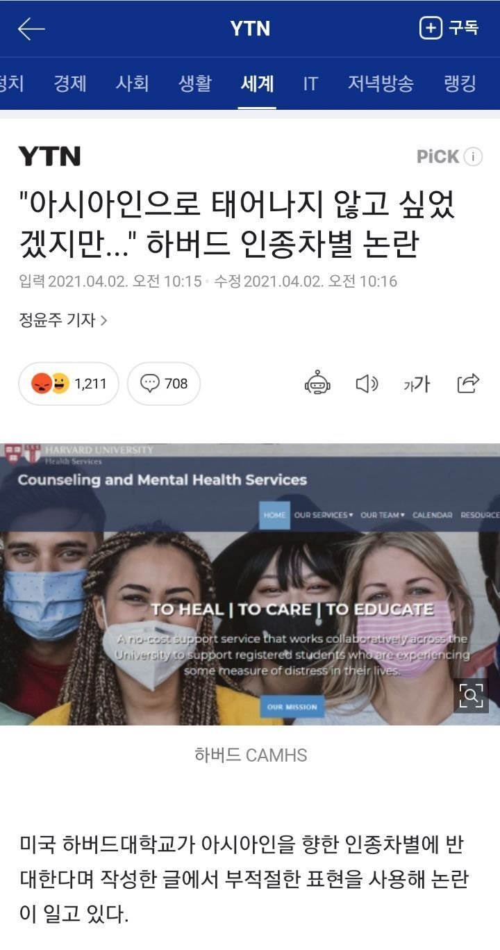 하버드대 상담 및 정신건강(CAMHS)서비스 사이트는 '아시아 인종 차별 반대' 페이지에 올린 글에서