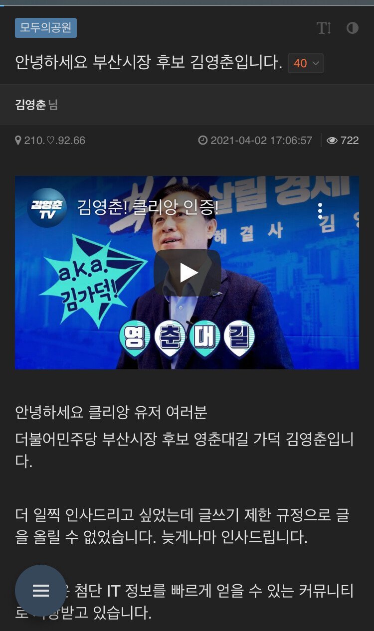젊은이들이 지지하는 젊은1번~~ 자~ 1하러 갑시다~ 덩실덩실