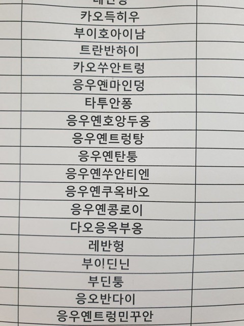 히우 남자 남 남자 하이 남자 트렁 남자 덩 여자 퐁 여자 두옹 남자 탕 남자 티엔 여자 바오 남자 로이 남자 부옹 남자 헝 남자 닌 남자 퉁 남자 다이 남자 꾸안 남자 거의 다 남자네
