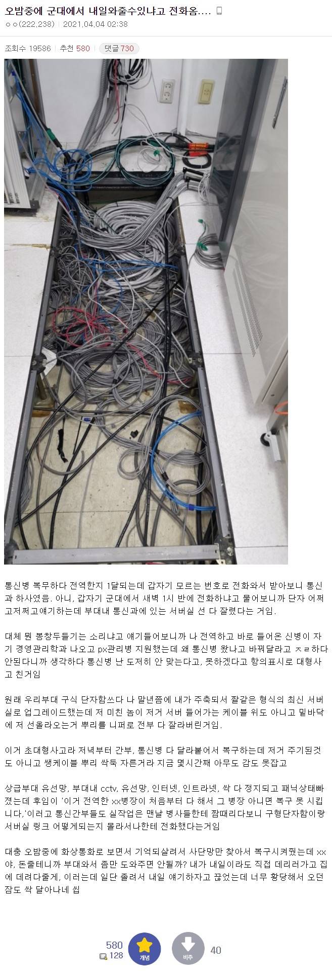 저거 자른 새끼는 그냥 냅두면 뭔가 사고 더 칠듯 나 영창 갔을 때도 이등병인데 1년 넘게 영창중인 놈 있었는데...