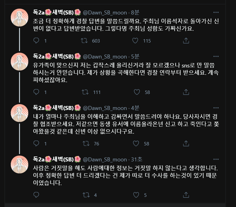 1. '새벽'이랑 자살했다는 사람(윤연*)이랑 작년에 싸웠었음.