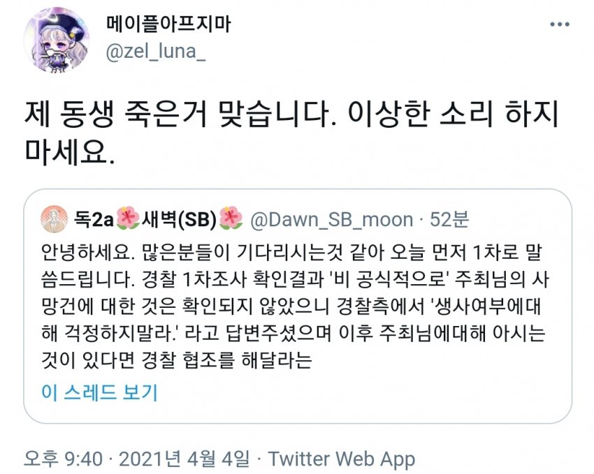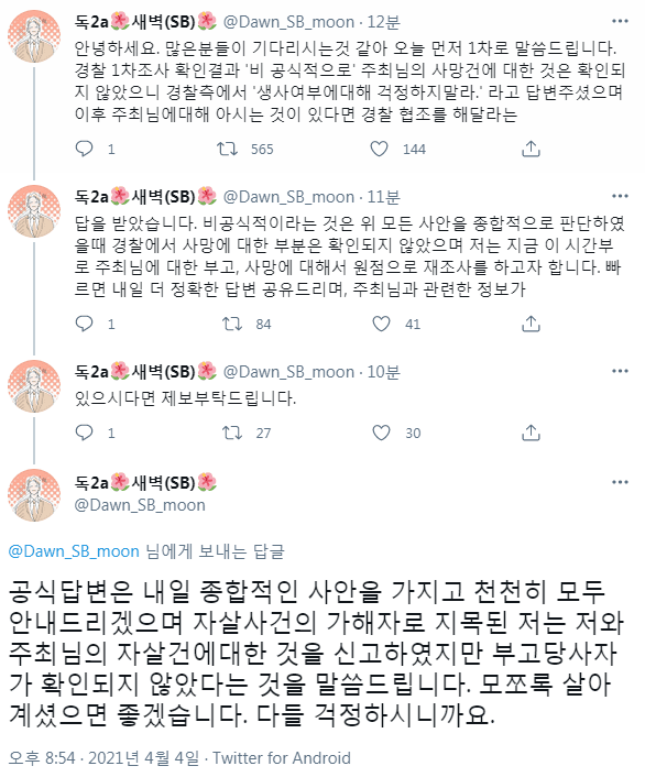 2. 그리고 오늘 자살했다는 사람이 유서에 '새벽' 닉네임을 적기도 했음.