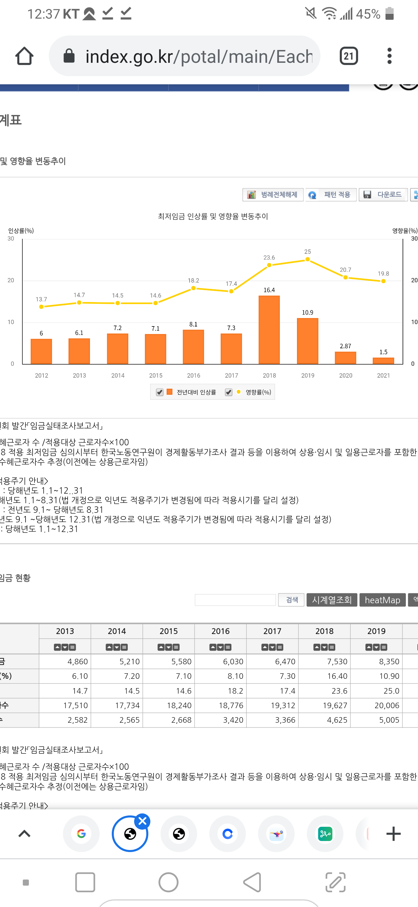 병신이 현실은 ㅈ도안보고 1,2년차에 16,11프로올리다가 저분위 소득만 개박살남ㅋㅋ 지금 만원하려면 15프로올려야하는데 ㅋㅋㅋ 그리고 지금 최저시급만원이면 포괄임금제낀 중소보다 돈 더잘벌걸?