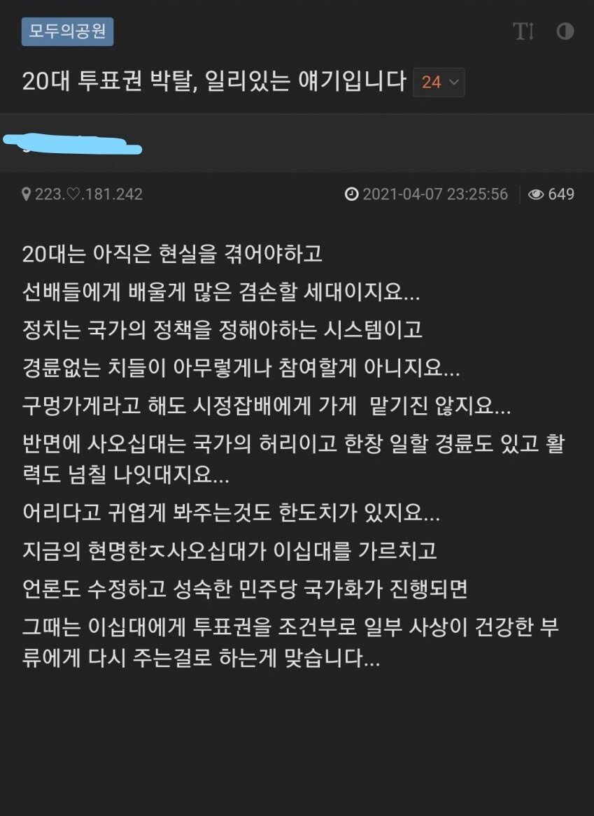 저 븅신들은 20대 투표 빼면 지들이 이겼을줄 아는건가