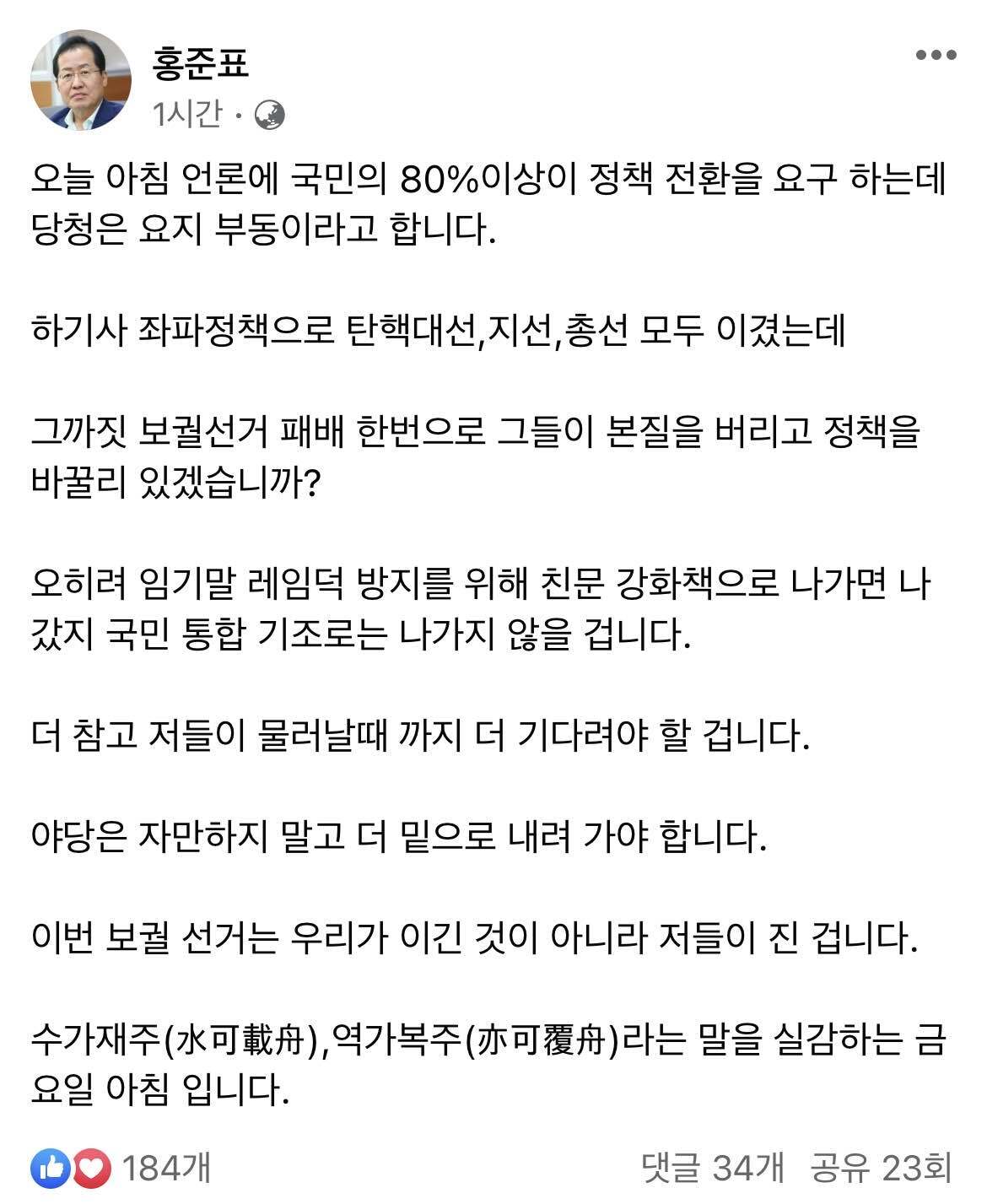 홍아재 국회의원인데요... 그리고 홍준표 아직 당권이든 대권이든 욕심있는거 같은데 어찌됐든 홍준표 황교안같은 구세대 보수인물이 죽어야 보수가 살고 나라가 산다 홍준표 당신이 얼마나 옮든 간데 당신은 사라져야할 인물이야 황교안은 그냥 씨발 꺼져야할 인물이고 이건 나경원도 마찬가지. 박근혜때 얼굴마담이 국힘에 남아있어서는 절대 정권교체 못한다