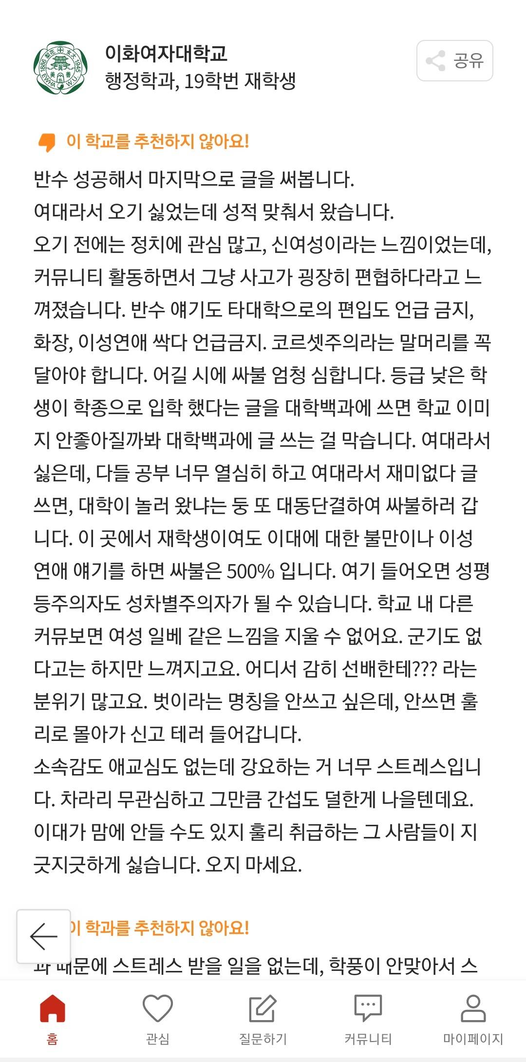 여대는 이제 믿거수준