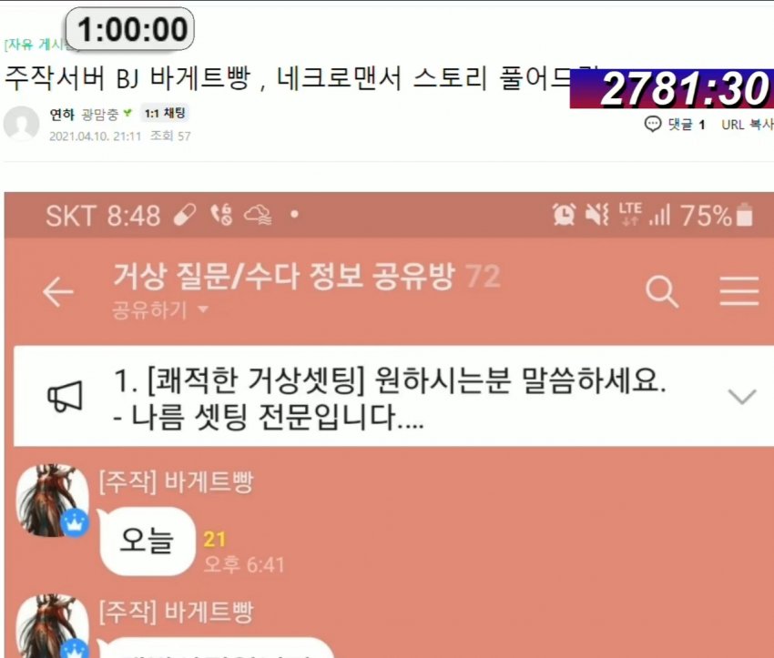 시간해놓은거보니 말구방송 캡쳐했나보네