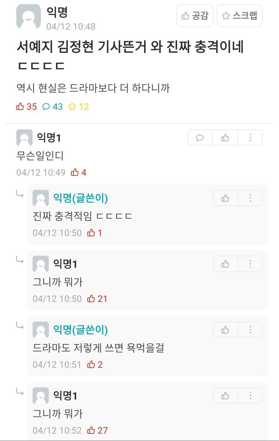 짤 글쓴 쫄보쉑 개역겹네, 어떻게든 글은 싸서 관심은 받고싶고 위험부담은 갖기 싫고. 서예지 병신 싸이코패스 멜돔 김정현 변태 노예성향 펨돔 장애인이라고 왜 말을 못해 씨발련아
