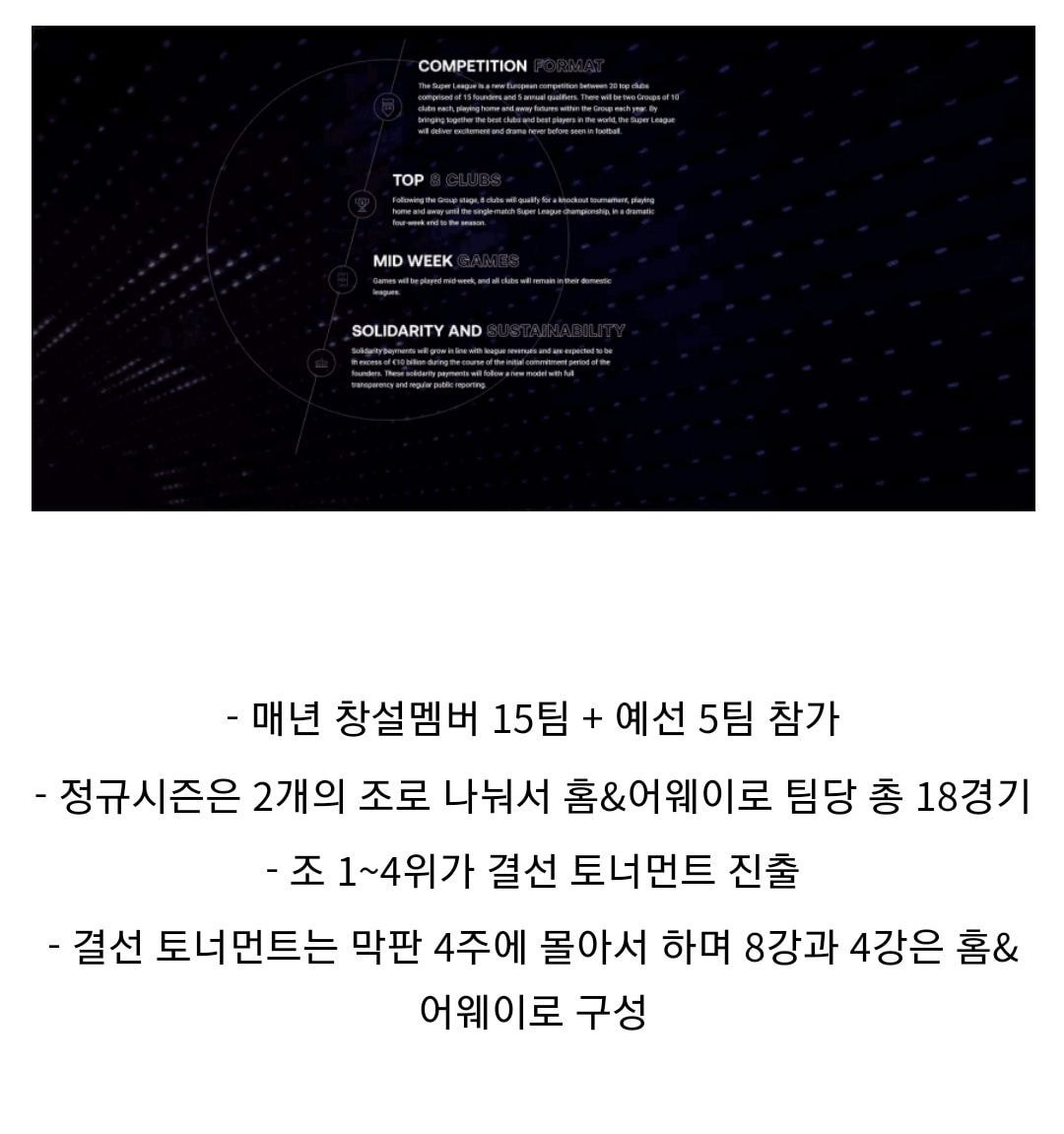 무엇보다 저 클럽들이 FIFA에서 제명되면 선수들이 저 클럽에 한번가면 FIFA소속 클럽들로 재이적이 안될수도 있음. 결국 이건 힘싸움이긴 한데, 존나 인기있는 선수가 돌아온다고 하면 클럽들은 존나 받으려할거고 FIFA 입장에서 막기도 어려울듯하지만, 고만고만한 선수들은 치명타일것. 그러면 선수수급도 안정적이지 못해서 슈퍼리그가 또 폭망할 수도 있음