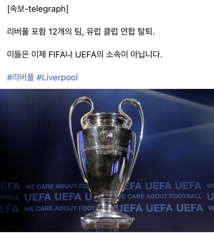 UEFA는 리그 참가팀 상대로 600억 유로급 소송 준비 중 - 근데 뭔 근거로?