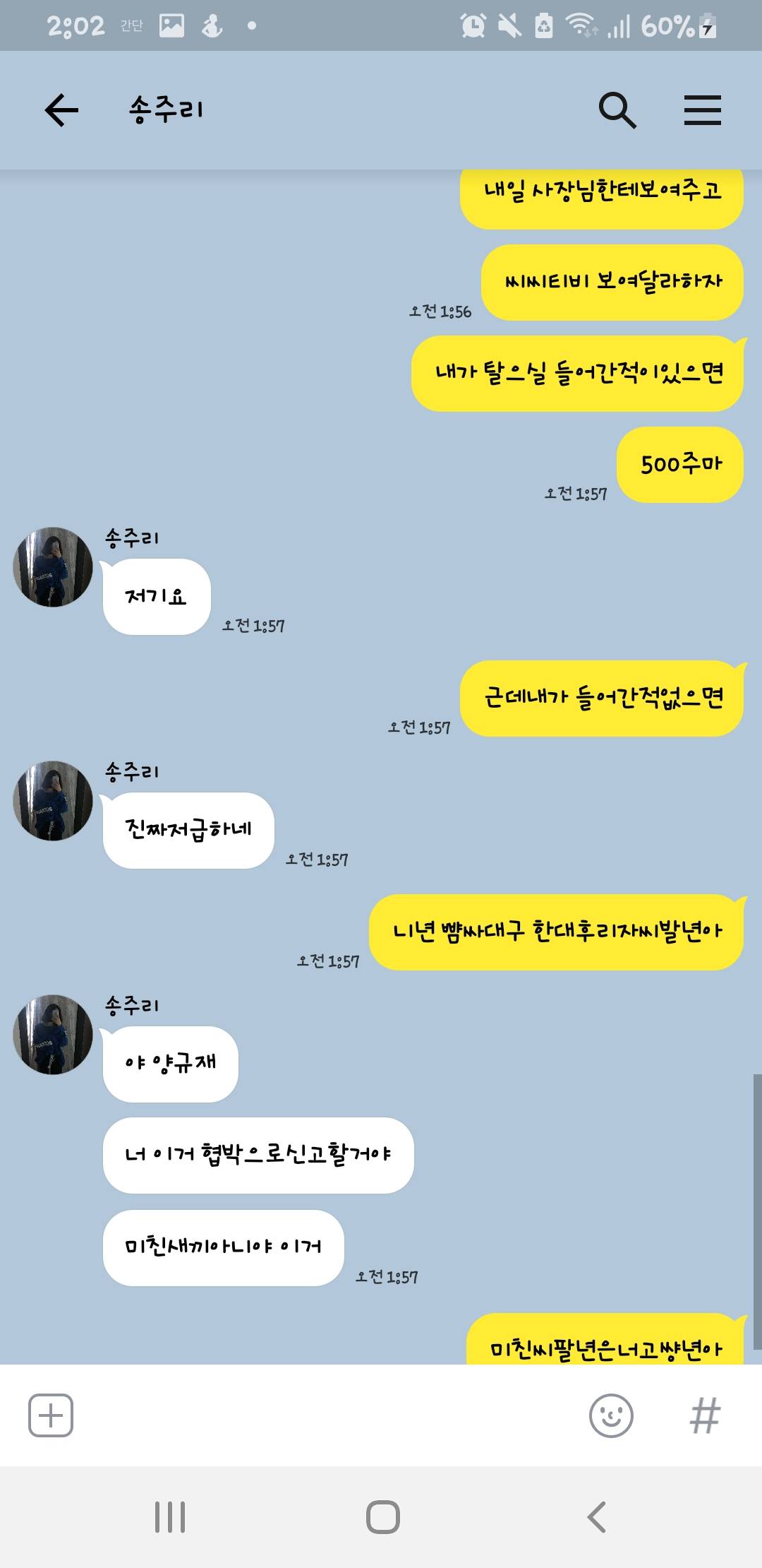 나같아도 왠 미친년이 갑자기 왠지랄인가 생각하면서 개쌍욕 박았을듯