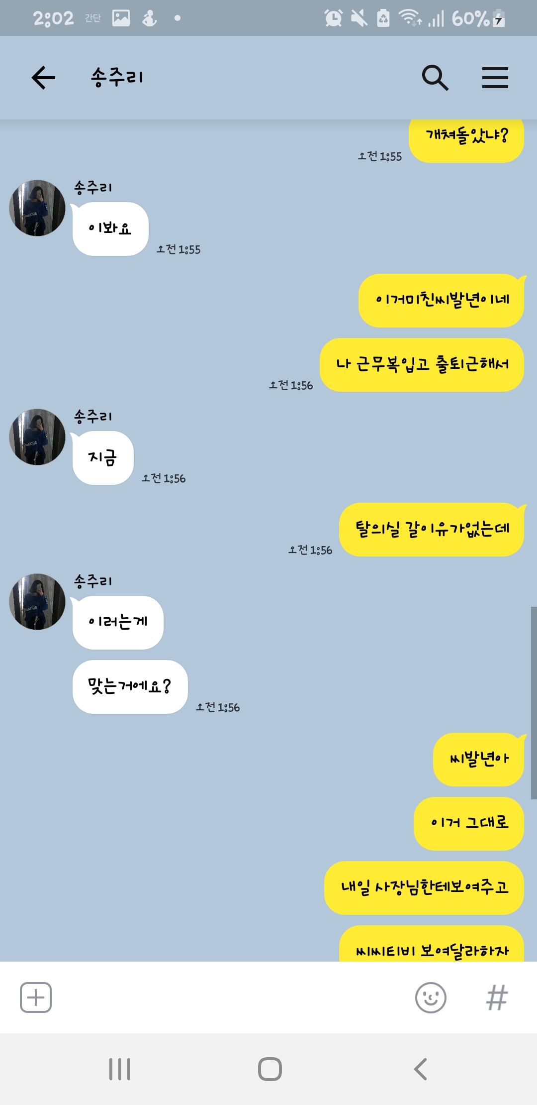 가뜩이나 교대할때마다 쳐늦게와서 존나역겨웠는데 오늘드디어 폭팔하게하네 이거어떻게못조지냐?
