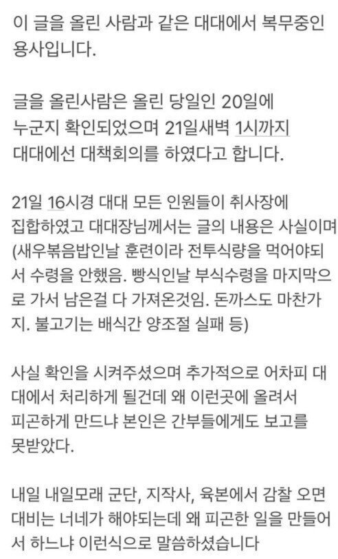 휴대폰 압수 및 상급부대 감찰 핑계로