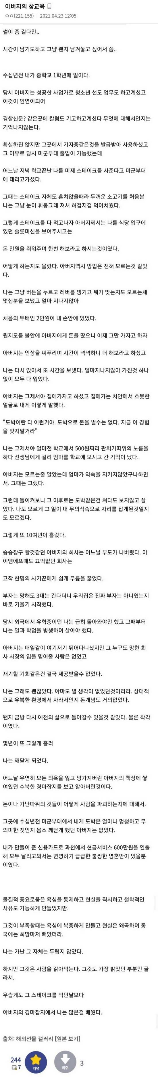 그래도 실화라는 전제하에 아버지 일화 참 안타깝네... 남의일 같지도 않고